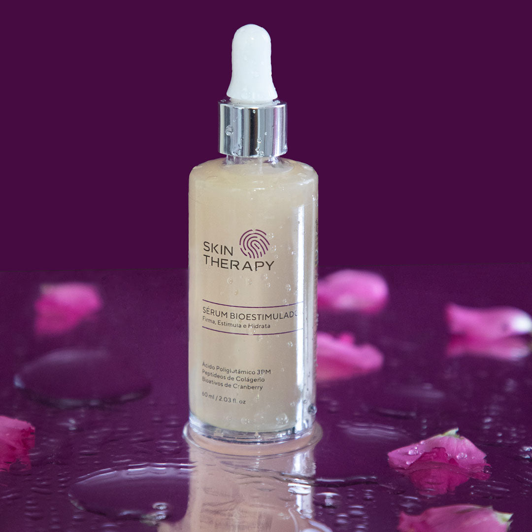 O Sérum Bioestimulador Skin Therapy é um produto concentrado que combina a ação do ácido poliglutâmico, peptídeos de colágeno e bioativos do cranberry.